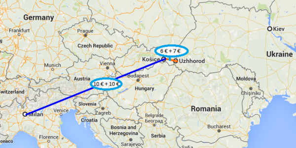 Маршрут: (Киев) – Ужгород – Кошице – Милан и назад