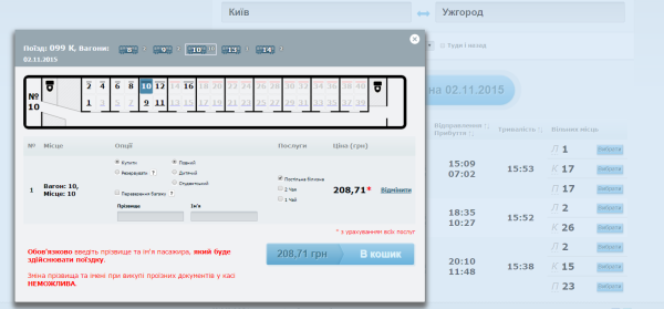 Ж/д билетов на данные даты еще нет, но проезд в одну сторону по маршруту Киев – Ужгород и назад будет стоить от 8 € (209 грн).