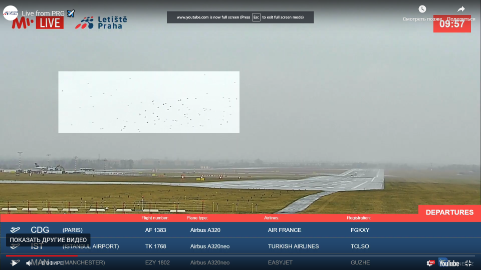 Аэропорт Вацлава Гавела (PRG) запустил онлайн трансляцию взлётов и посадок.