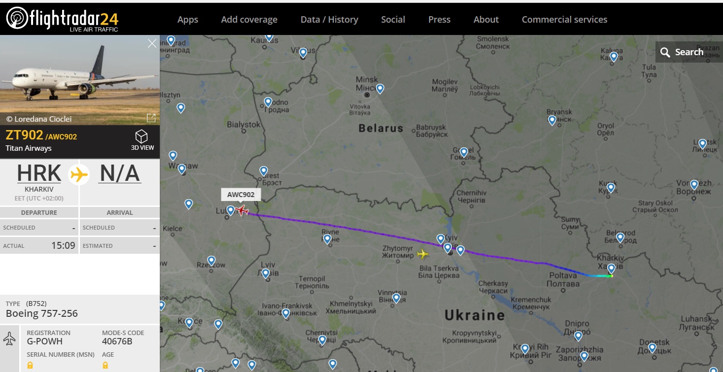 Everton (Appolon) – команда обычно летала на вс от Maleth Aero, но сейчас это старый знакомый G-POWH от Titan airways. Данный вс отвезет команду и улетит в Харьков забирать Ман Сити. Складывается впечатление, что в этом году в Британии поубавилось бортов для команд и они используют G-POWH в разнос. В прошлом году выбор был гораздо больше и ярче.