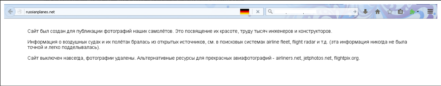 При подготовке материала об участии самолета летного отряда «Россия» в «кокаиновом деле» сайт russianplanes.net был одним из источников информации о полетах и характеристиках Ил-96 с бортовым номером 96023. Спустя несколько часов после публикации на главной странице сайта появилась запись: «Сайт был создан для публикации фотографий наших самолетов. Их красоте, труду тысяч инженеров и конструкторов. Сайт выключен навсегда, фотографии удалены». Однако позднее и эта запись исчезла, при переходе на страницы сайта появлялось сообщение об ошибке 404.
