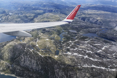 Норвежские фьорды во время перелета из Осло в Ставангер и обратно.
