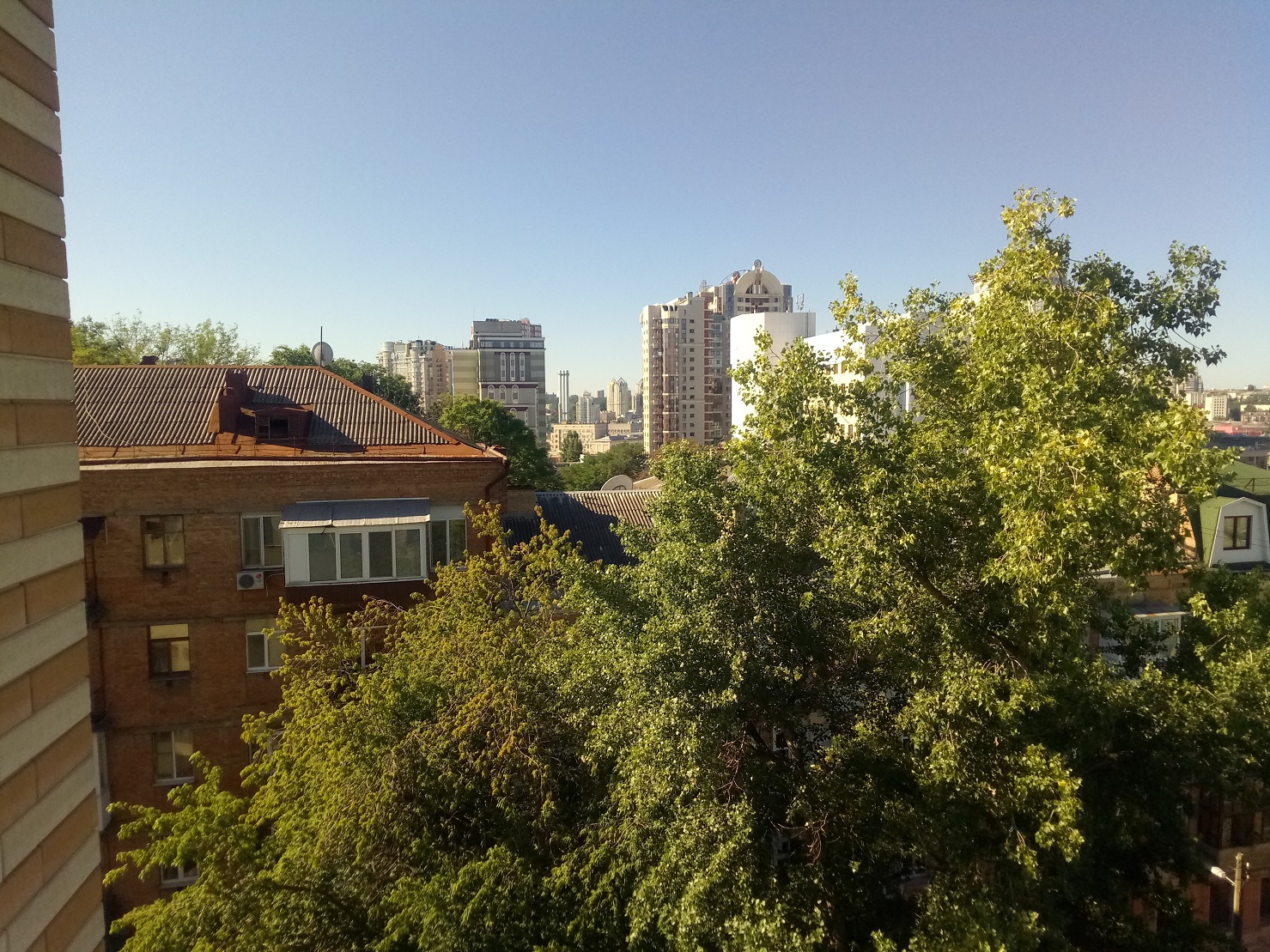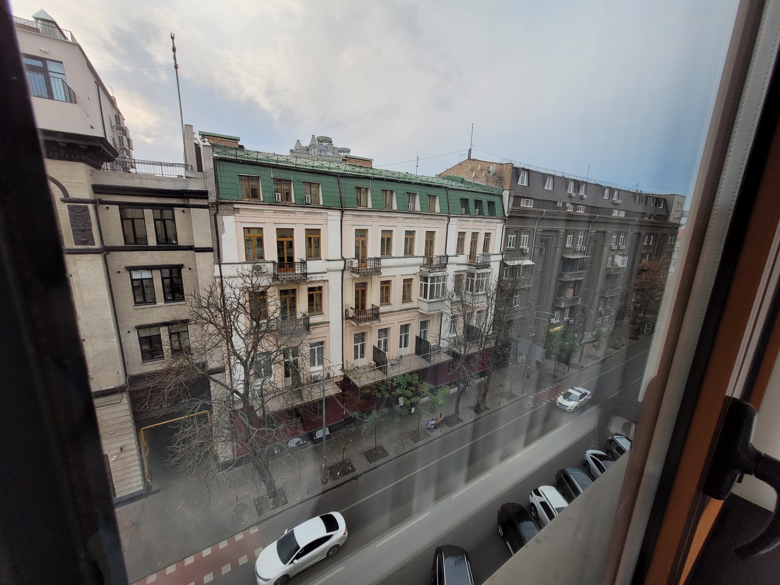 Я приехал около 12:30, и номер был уже готов. Так что, несмотря на то, что я бронировал не через официальный сайт, ранний заезд все равно мне сделали. Номер был с "видом" на Крещатик, точнее на строительные леса. Но все же немного было видно главную улицу столицы. Шум от строительных работ ощущался очень слабо, почти незаметно. Судя по всему, в номера, где ощущается шум от работ, просто не заселяют, и это правильно.