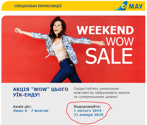 Пришла рассылка от МАУ об акции. Сроки путешествия немного сократили