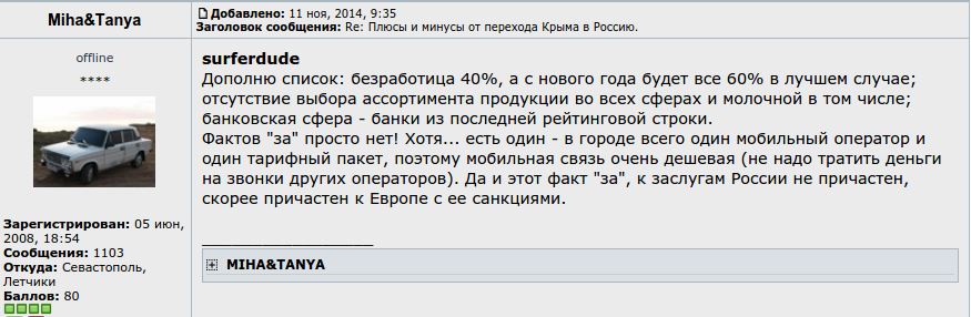 *** Даже на Севастопольском форуме в последнее время всё чаще можно увидеть разочарование от всего произошедшего. И это при том, что в Крыму нет войны... пока нет ***