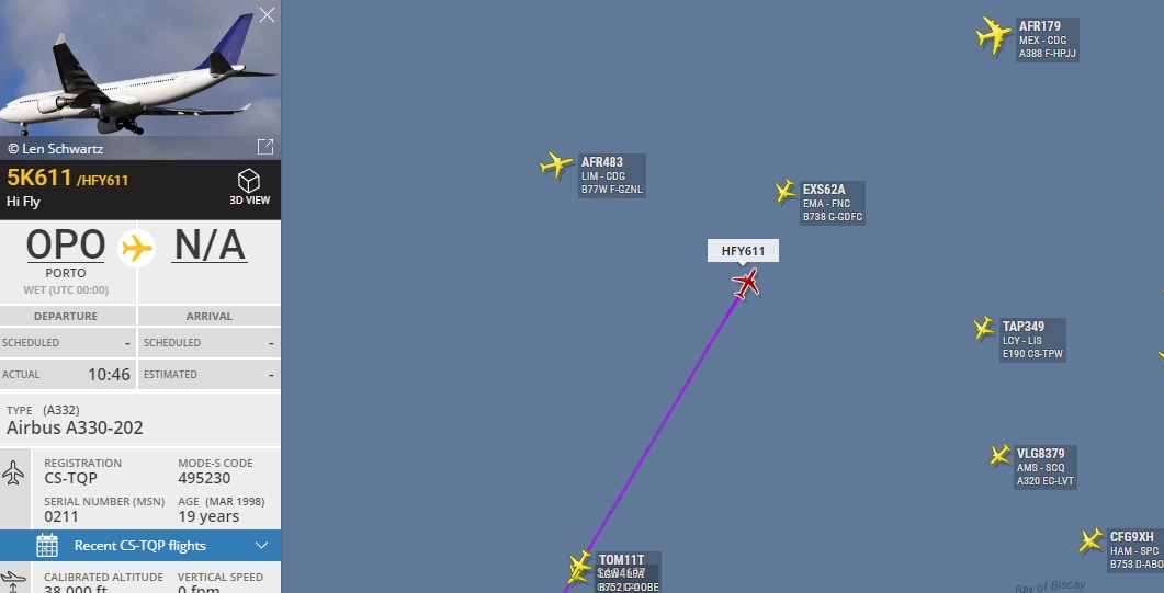 Порту сейчас летит в Ливерпуль на А330 HiFly