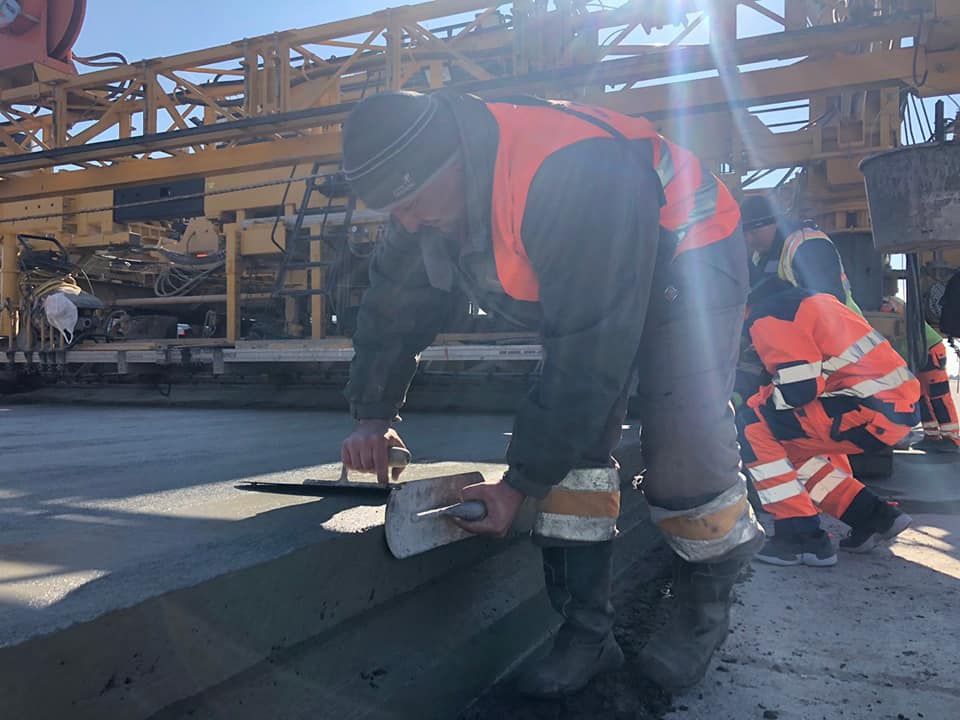 А останніми днями перейшли на бетонні роботи – проводимо влаштування шару «важкого» бетону на пероні літовища. Фактично перон — частина аеродромних покриттів, призначена для стоянки літаків, а також посадки і висадки пасажирів та вантажів. З перону літаки по руліжним доріжкам РД-С3 і РД-А1 виїжджають на злітно-посадову смугу.