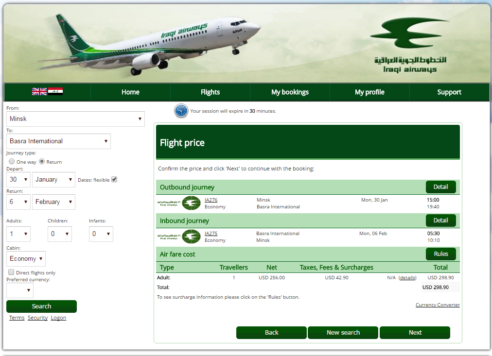 В агрегаторах нет, но можно купить на сайте авиакомпании. Рейсы прямые!!!. На ближайшую пятницу в Багдад самолёт полностью распродан: