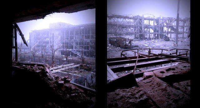 Даже разрушенная, вышка в донецком аэропорту показывает дулю сепаратистам.