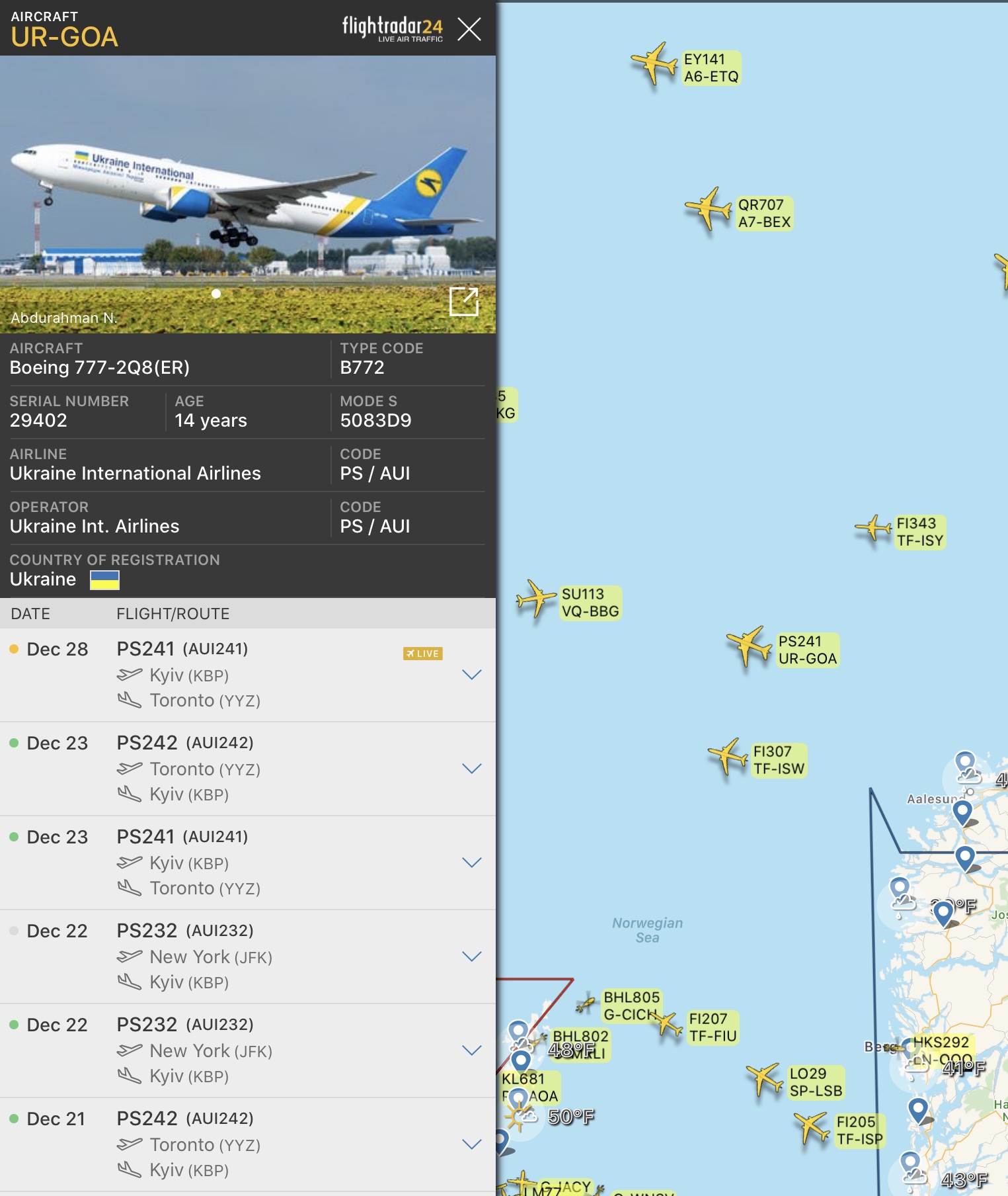 Тим часом, UR-GOA вже знову виконує регулярний рейс в Торонто