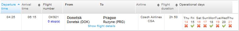а в Одессе ежедневно (10.00-17.00 час.). В связи с запланированным началом регулярного оперирования рейсов авиакомпании «Czech Airlines» во Львов, Харьков и Донецк, в течение ближайших недель авиакомпания расширит количество мест для оплаты наличными. Новым способом оплаты наличными можно воспользоваться для оплаты любого авиабилета компании «Czech Airlines» независимо от класса резервирования или класса поездки/авиабилета, причем срок вылета должен составлять минимально семь дней от даты проведения резервирования. Авиакомпания «Czech Airlines» не взимает никакого сбора за использование этого способа оплаты. За авиабилеты, оформленные таким способом, с клиента взимается только стандартный сервисный сбор, такой же, как и при покупке авиабилета непосредственно на страницах веб-сайта компании.