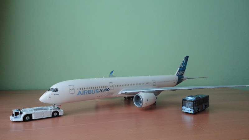 Ось з нового. A350 від Revell в масштабі 1/144 - довжина 47 см, розмах крил 46 см. Модель нова, вийшла в грудні 2013 року, тоді я її і купив в Австрії за 21 євро, а доробив тільки тепер.