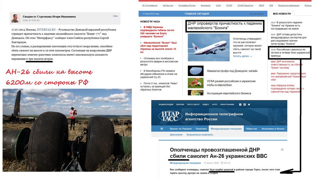 ЛажаНьюз уже как всегда на месте событий и обвиняет во всём Украину, которая заранее и специально для этого пригнала в Донецкую область технику, способную сбить пассажирский лайнер на большой высоте. Цитата: "Известно, что в Донецкую область, где произошла катастрофа, украинскими военными ранее был перебазирован дивизион самоходных зенитных ракетных комплексов "Бук". Эти ЗРК и С-300 могут сбить воздушные суда на высоте более 10 тысяч метров. У ополчения такого оружия нет".