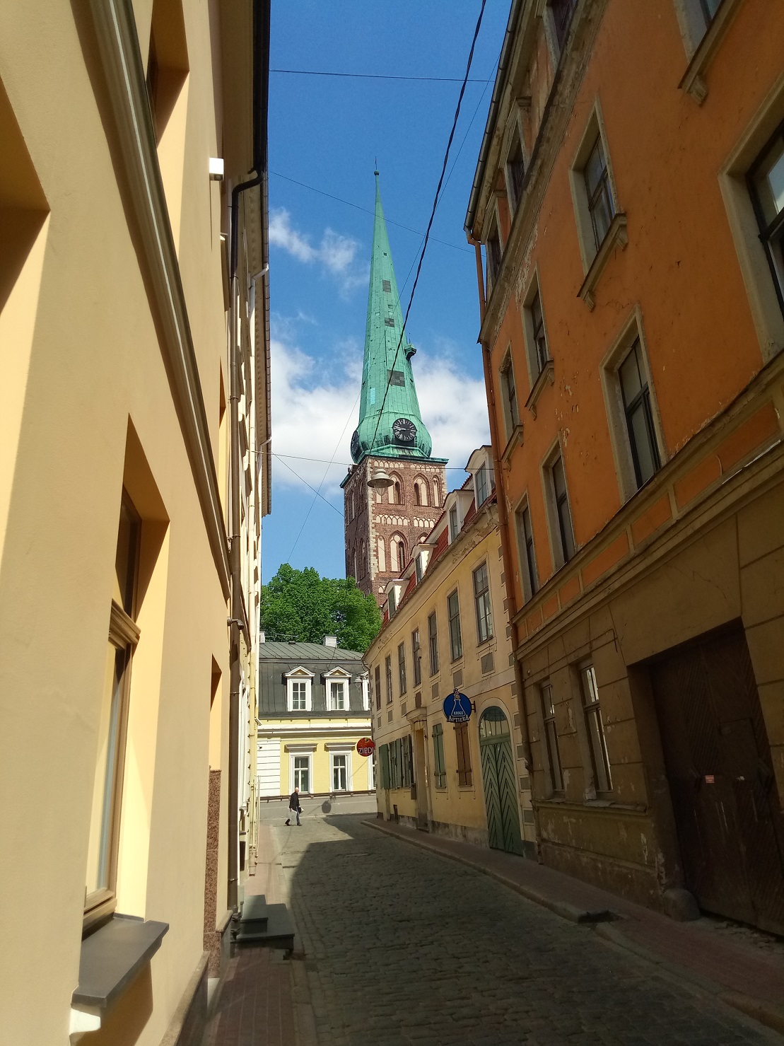 Собор св. Иакова. Домский собор. Собор св. Петра. Pils iela, в переводе с латышского Замковая улица, на которой находится мой отель. Красота! На атмосферных улочках Старого города. В Старом городе, со средневековыми строениями соседствует не только модерн, а и более новая архитектура.
