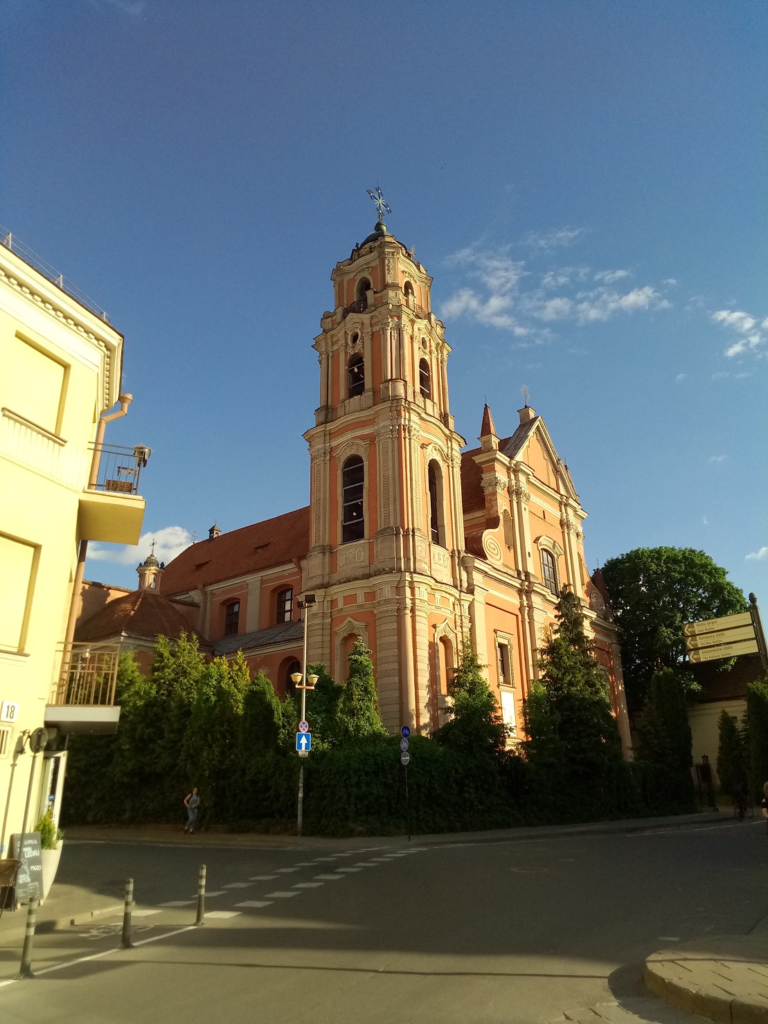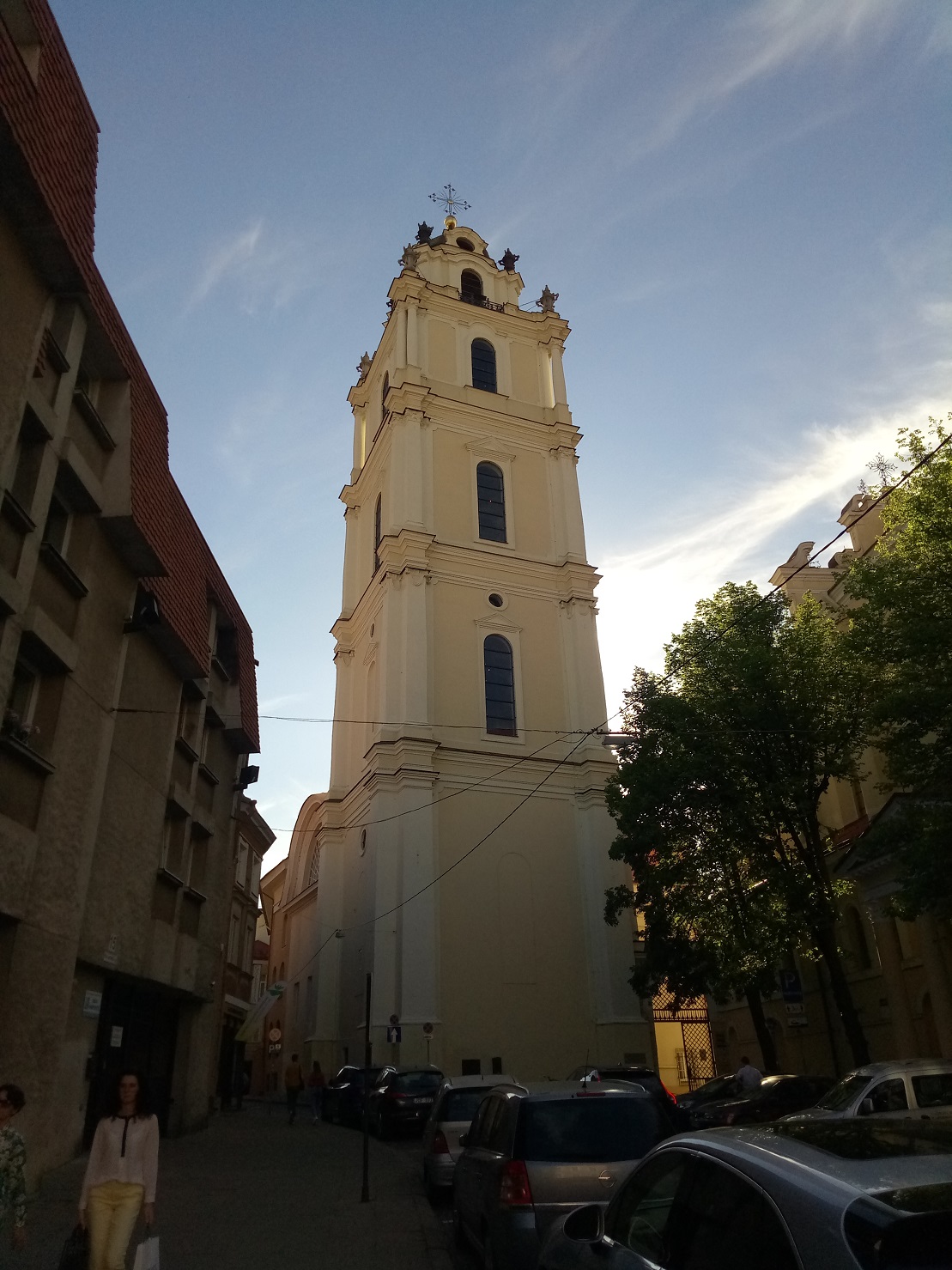 Вильнюсский собор. Полное название Собор святого Станислава. На улице Пилес, которая является первой частью главной оси Старого города "Пилес-Диджёи-Аушрос Варту". Люблю всякие верхотуры, поэтому взобрался на стекляном лифте на колокольню Собора святых Иоаннов.