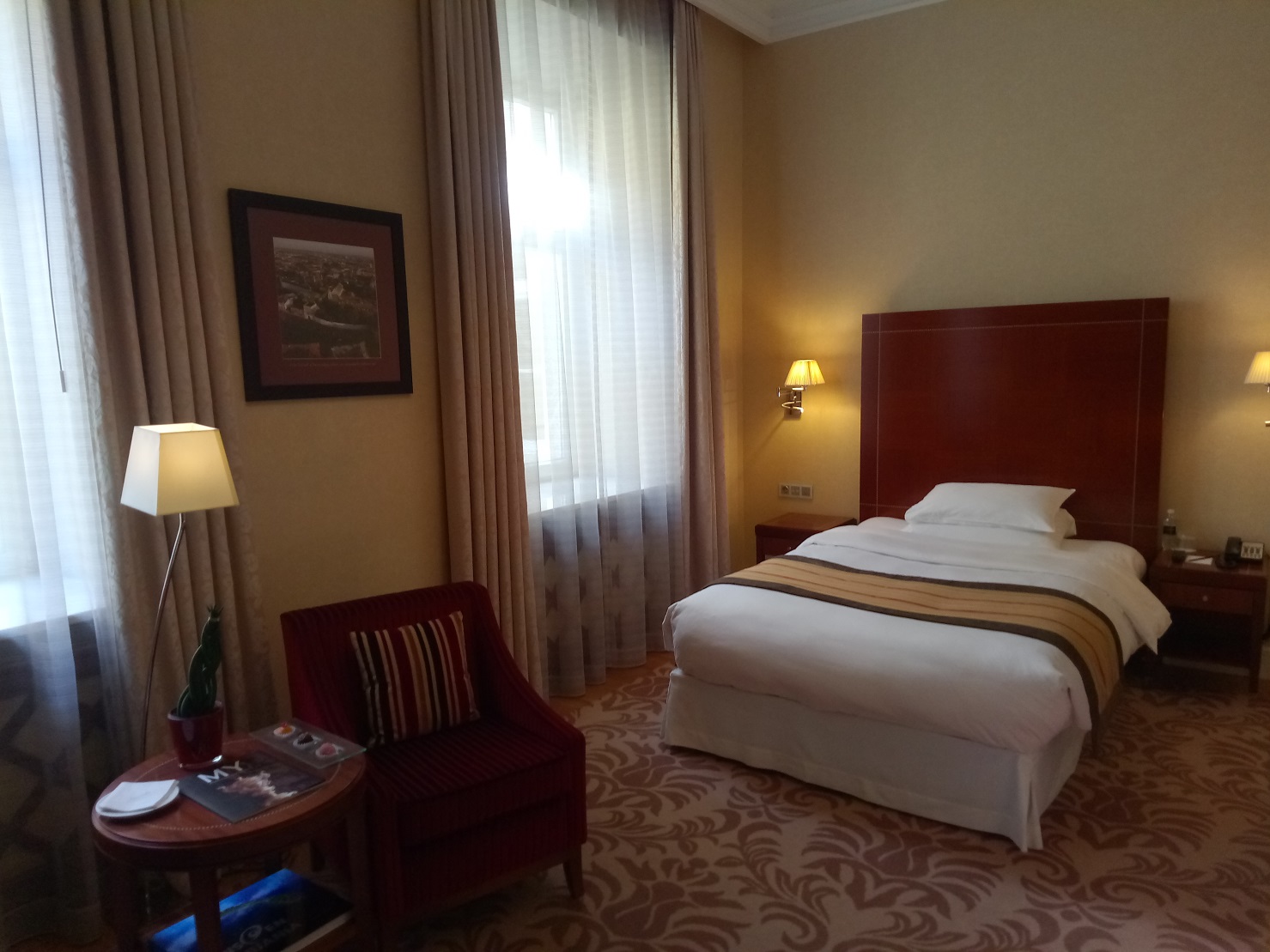 Вида из окна, по сути, не было. Окна выходили на какое-то маленькое пространство, которое даже внутренним двором и не назовешь. В следующий раз возьму номер более высокой категории с видом на Кафедральную площадь. Альтернатив Кемпински в Вильнюсе все равно нет.