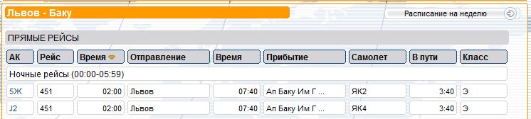 Пока полеты будут осуществляться один раз в неделю по понедельникам с прямой доставкой пассажиров в аэропорт Львов и трансфером до санаториев Трускавца и Моршина. Однако в случае повышения спроса, число рейсов может быть увеличено. Стоимость билетов составляет порядка 400 манатов.