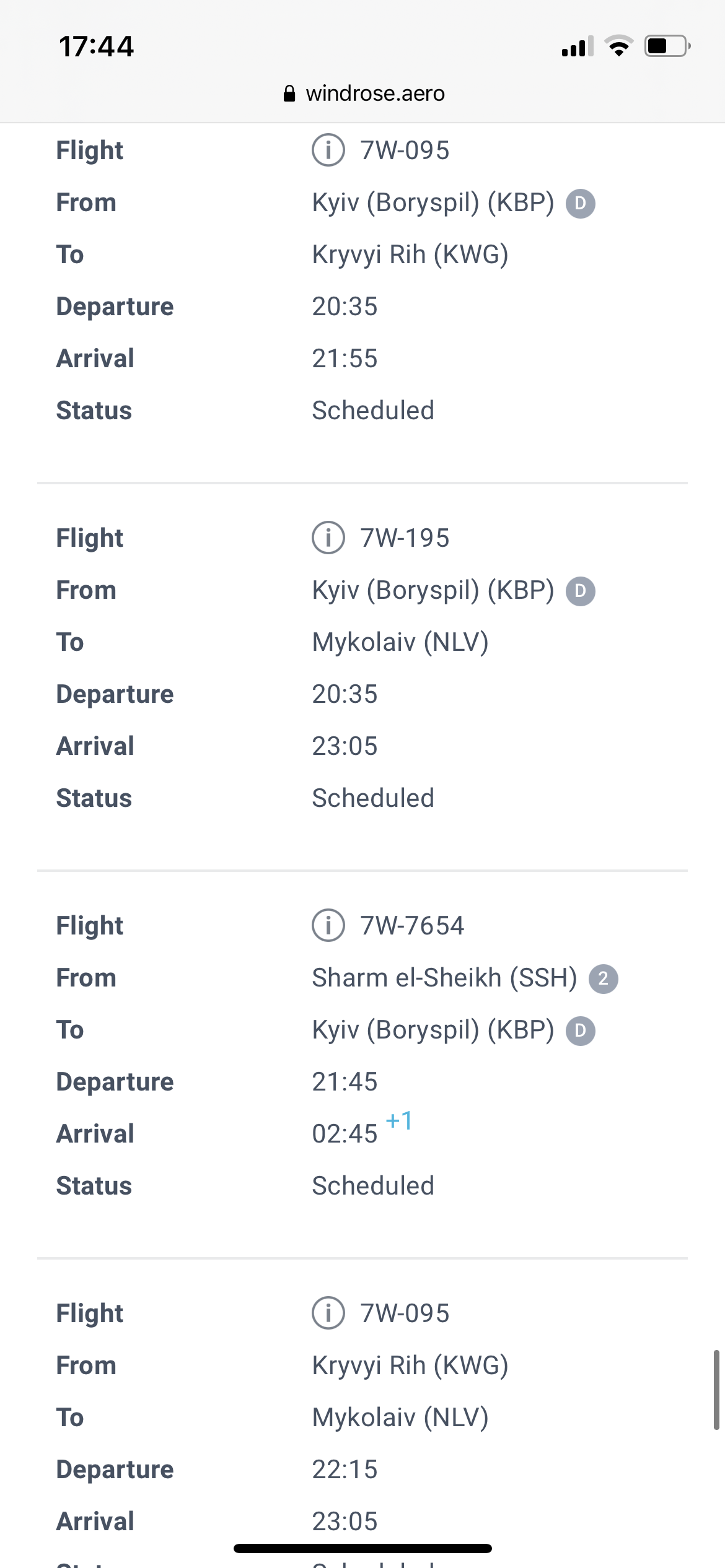 Всем доброго дня. Давно читаю этот форум, но вот и зарегистрировался. Есть что сказать. Все именно так и было уже с этих праздников. По прилету в Николаев вечером 18.06 в пятницу как раз получил смс, Viber и на почту сообщение о переносе вылета на 22.06 вторник с 7-00 на 6-30 и полет через Кривой Рог.