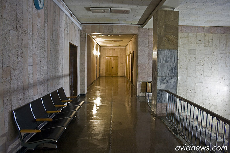 Заходим в терминал. В левой крыле зал регистрации с 4 тумбочками и зал ожидания с 4 тумбочками. Тумбочки это "стойки регистрации