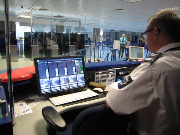 В нашей стране, я заглядывал, все очень просто - практически текстовые формы со времен MS-DOS, Пограничник вручную впечатывает ФИО, номер паспорта. Некоторые КПП оборудованы машиночитаемым сканером, но работает он ненадежно, я бы наверное быстрее набрал на клавиатуре. А с проходом иностранцев - так это вообще по 5-7 минут на каждого.
