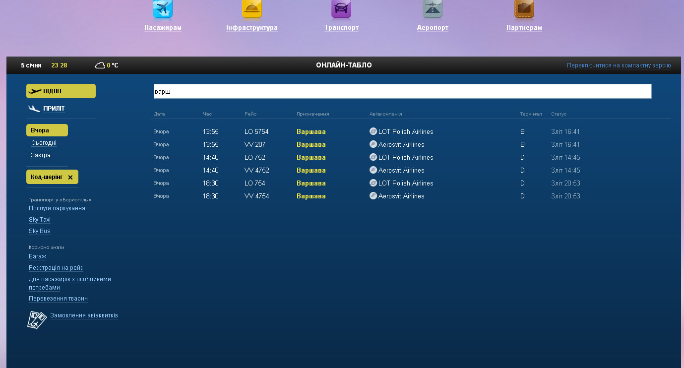 Самолет Аэросвита застрял в Варшаве в пятницу. Вчера вылетел, но не прилетел. Сегодня был отменен один рейс на вылет из Борисполя и два рейса на прилет из Варшавы.