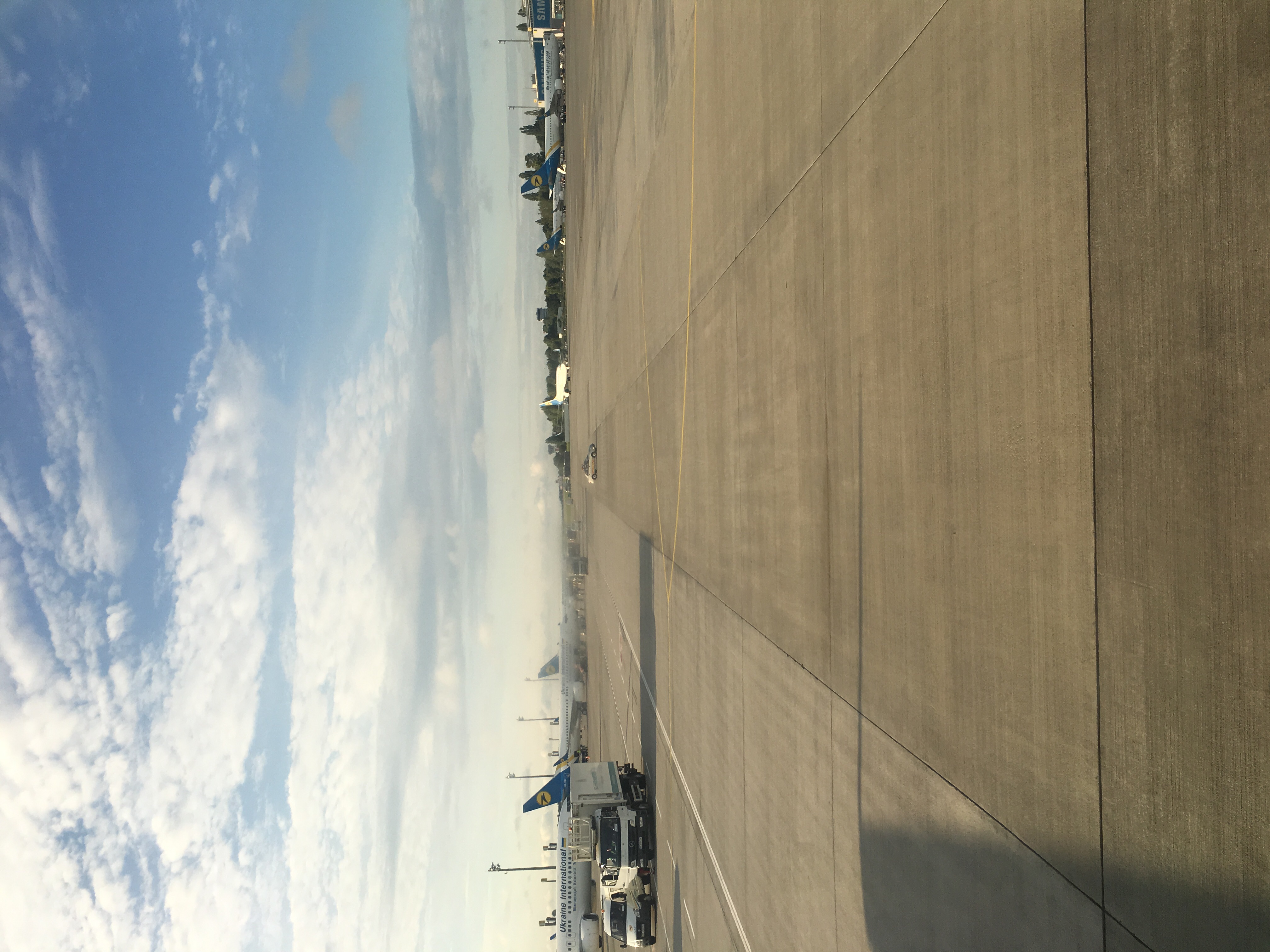 Интересная организация движения на перроне в Борисполе. Теперь для парковки на удаленной стоянке самолет сперва поворачивает к терминалу, выключает двигатели и тягачом буксируется задним ходом на стоянку. И все стоят носом вперед)
