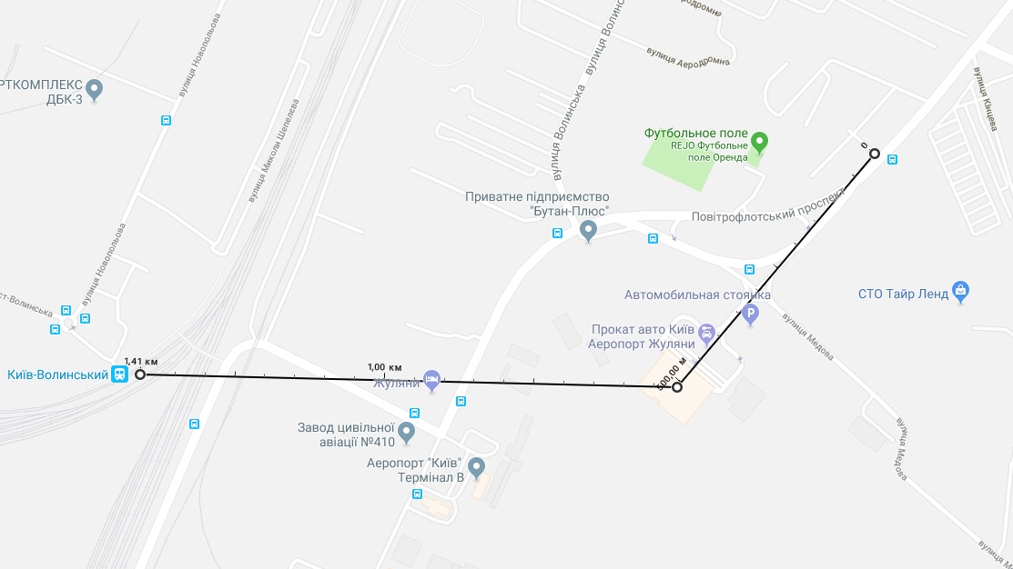 Именно в том, что вы меряете напряму. В реальности только с терминала В (старого) в новый терминал А пешком топать нужно минут 15-20 по не слижком приятному тротуару. А к терминалу В с вокзала топать еще столько же по еще менее приятному тротуару (местами превращающимуся в грунтовую тропу) вдоль полузаброшенных индустриальных помещений. Приятного уж очень мало, я вам так скажу, испытал на себе.