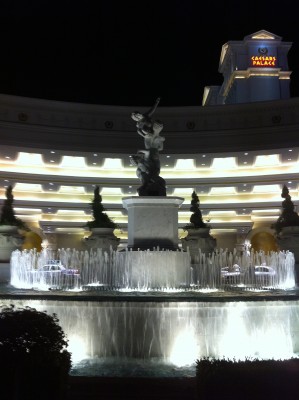 Отдохнув в бизнес зале (к слову, самом приличном, в котором мне довелось побывать в Штатах) я сел в Боинг 737-800 авиакомпании United Airlines под управлением пилота-женщины (впервые за свой летный стаж), который за 45 минут доставил меня в Вегас. Аэропорт в Вегасе огромный с кучей гейтов и двумя терминалами, которые, в большинстве своем, пустуют. Ооочень долгое руление к гейту, поездка на поезде из одного терминала в другой, очередь на такси, 23 доллара и через 15 минут я у отеля Bellagio.