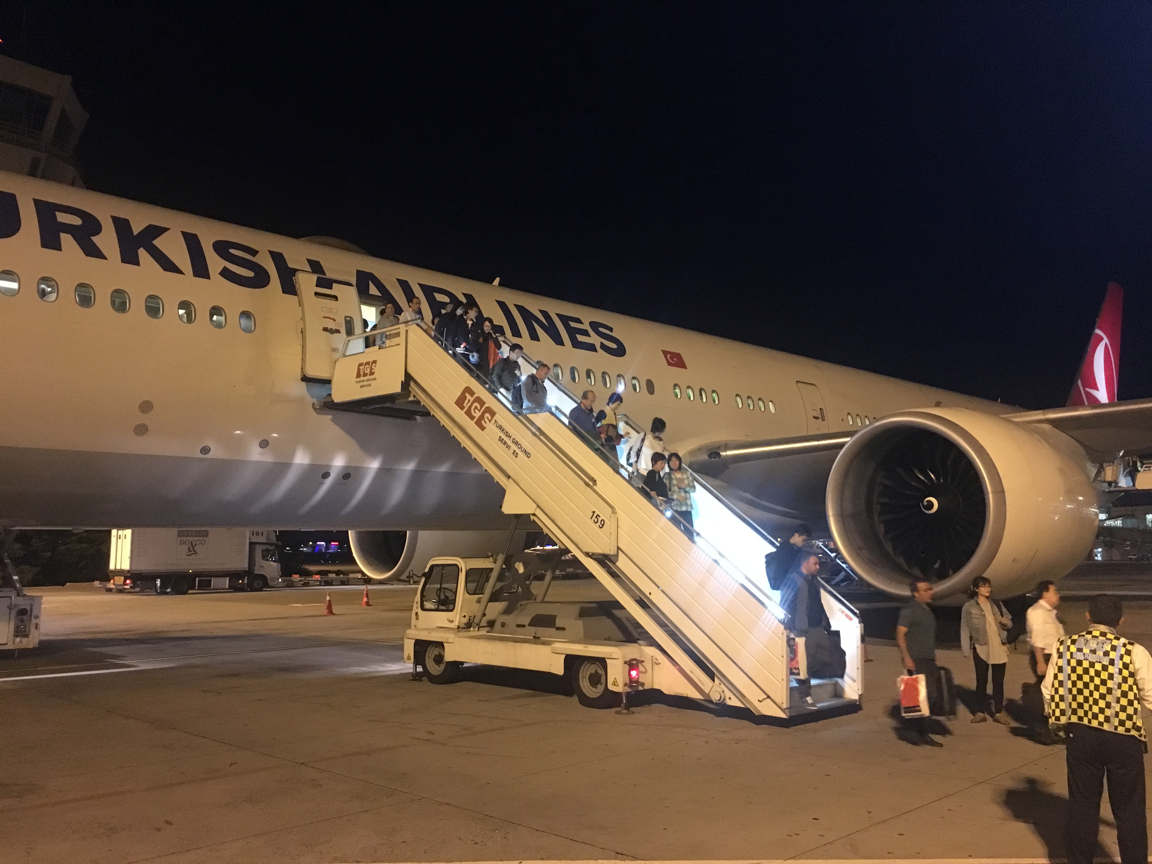 ... Впервые увидел, чтобы время вылета регулярного рейса сменили на более раннее - вместо 22:30 вылет перенесли на 22:00. Самолет - 8-летний TC-JJE, 7 рядов бизнеса, остальное эконом. Кресла старого образца (как в Airbus A330-300 на рейсе Киев-Стамбул). Сервис, как обычно у турков, не очень навязчивый и не очень торопливый, хотя логично было бы быстренько всех накормить и уложить. Вместо этого эпопея растягивается часа на 2,5. Время в пути из Токио в Стамбул - 11 часов. Будят примерно за 2,5 часа для завтрака. Посадка мягках, комфортная, но гейт автобусный, хотя все телетрапы свободны. Почему? Да потому что следующий рейс этого самолета запланирован в Измир, рейс внутренний, то есть его нельзя ставить ни на телетрап международного терминала, ни на телетрап внутреннего.