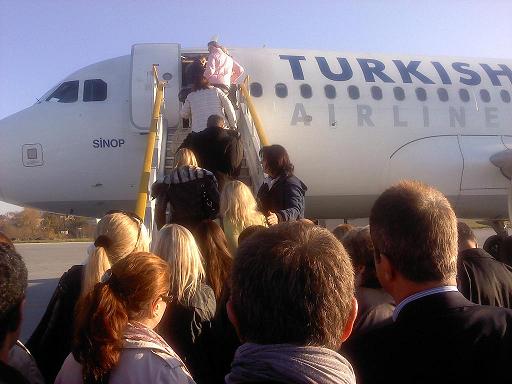 Наразі в аеропорту 3-го листопада йшли ремонтні роботи, тому дуже багато чого перекопано. В квитку на відрізок Львів_Стамбул стояв В737-400. Я трохи знітився адже у Turkish всього 3 літака цього типу і всі вони близько 20 років. Але коли автобус під`їхав до вс, я був вражений. Турки подали мій улюблений тип середньо магістрального літака - А319. На разі стояв 5-ти річний А319 під реєстраційним номером TC-JLM «Sinop». Виліт о 15.10 Турецька авіакомпанія називає свої літаки за іменами турецьких міст.
