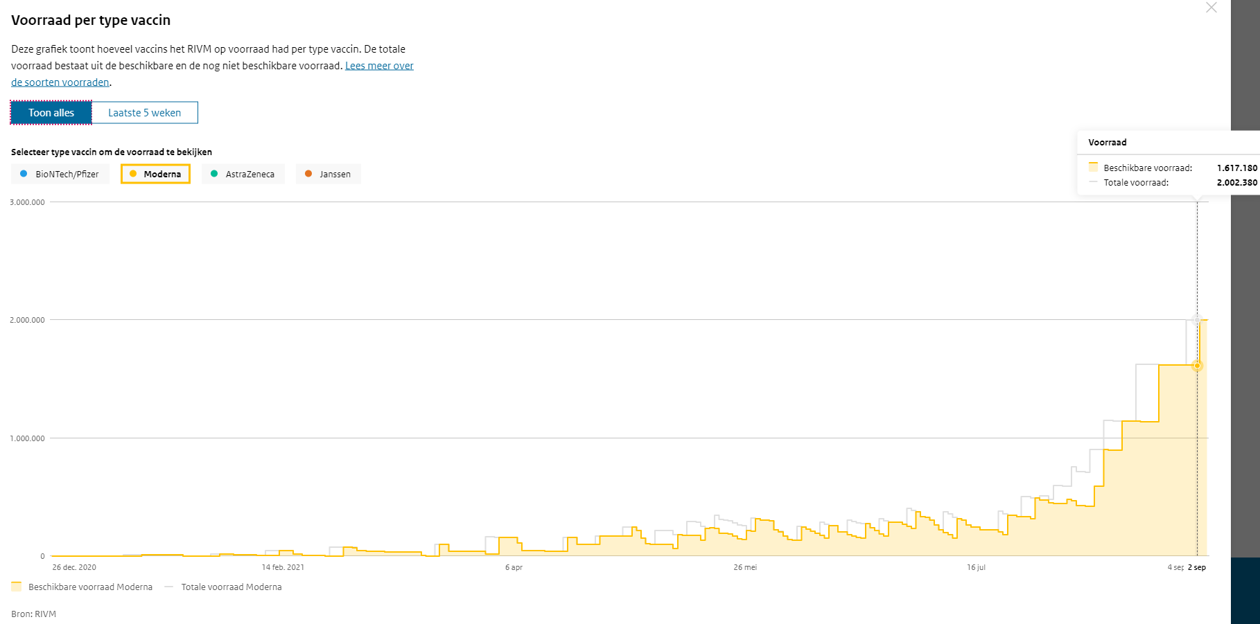 Ось динаміка заповнення Нідерландських складів одними лише мрнк-вакцинами (більше 4млн доз):