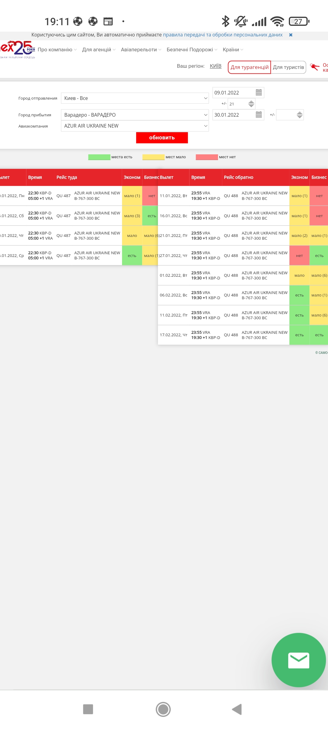 На сайті сабжа на післязавтра є рейс. Чи це не гарантія виконання перельоту?