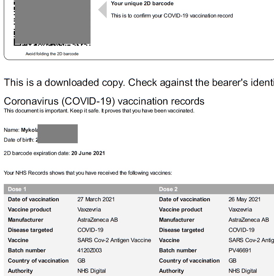 нигде так и не написано, каким образом должен быть оформлен сертификат, надеюсь они будут принимать простую англоязычную распечатку с именем, датой рождение, датой и типом вакцины.ABC писав: ↑08 червня 2021, 16:14 Сам не анализировал, но: