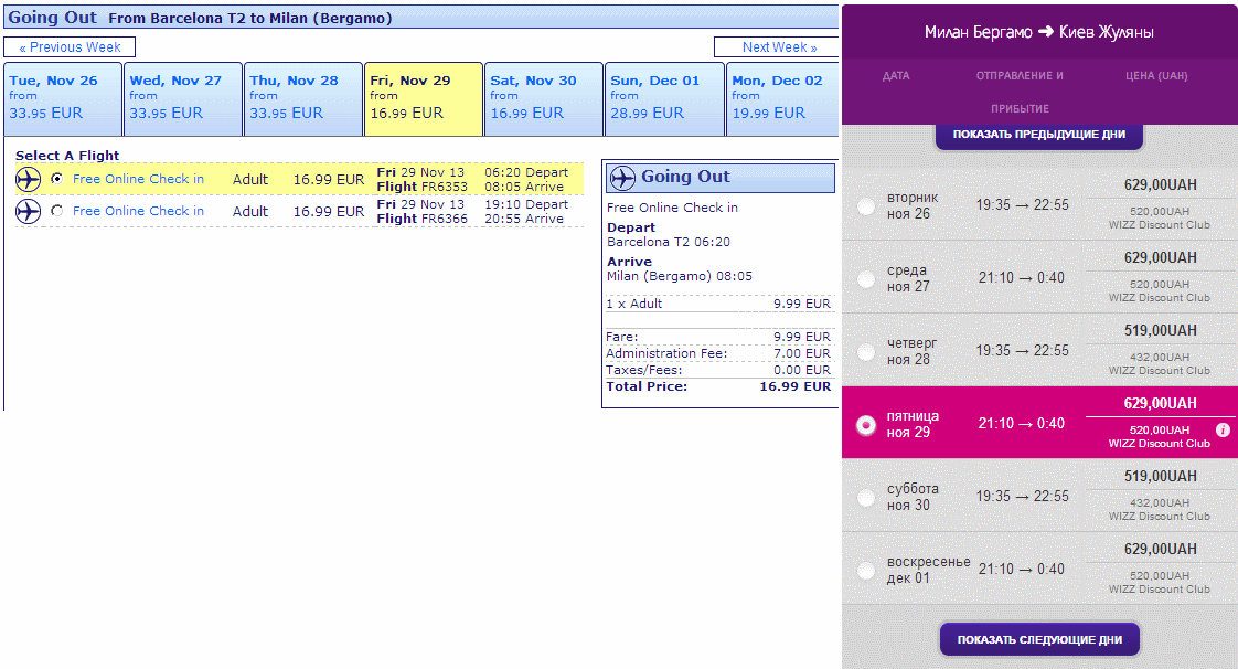 Вот, на скорую руку(сейчас нужно смотреть ноябрь -декабрь), вылет из Киева на 2 дня ножки у моря погреть(обратите внимание, аэропорт нормальной Барселоны, а не Жироны):
