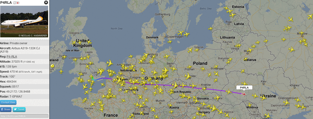Оба самолета P4-ARL и P4-RLA принадлежат "великому человеку", а также "человеку года", "бизнесмену года" Ахметову Ринату Леонидовичу!!!BurnBurner писав:Наблюдал этот рейс из Донецка в Фарнбро, сейчас видимо возвращается. Есть идеи чей самолет? Рег номер очень похож на правительственный, но этот - частный. Может Ахметов?