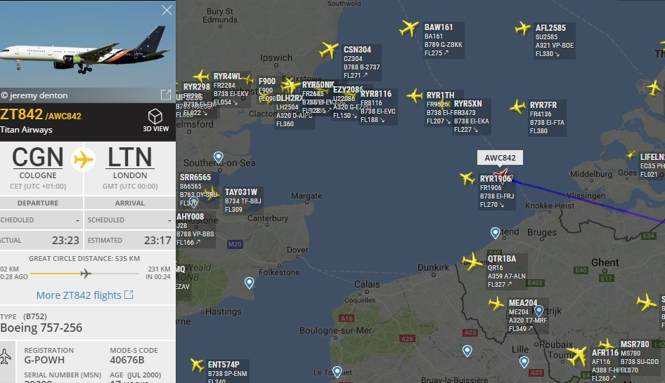 Arsenal – традиционен в выборе 757 G-POWH Titan Airways (полностью бизнес класс). Борт привез команду, выгрузил, ушел на рейсы и вернулся. Все 3 выездные матча Арсенал летел именно на этом борту.