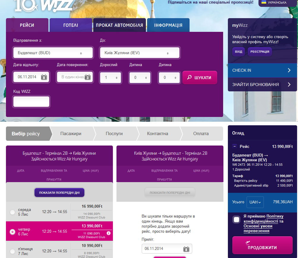 Даже со всей фигнёй (багаж и большая ручная кладь) - 80 Евро. Откуда взяли цену 150?DimonK писав:У них любой язык на домене wizzair.comkhai писав:Рекомендую при покупке билетов на рейсы Визз пользоваться сайтом wizzair.com
