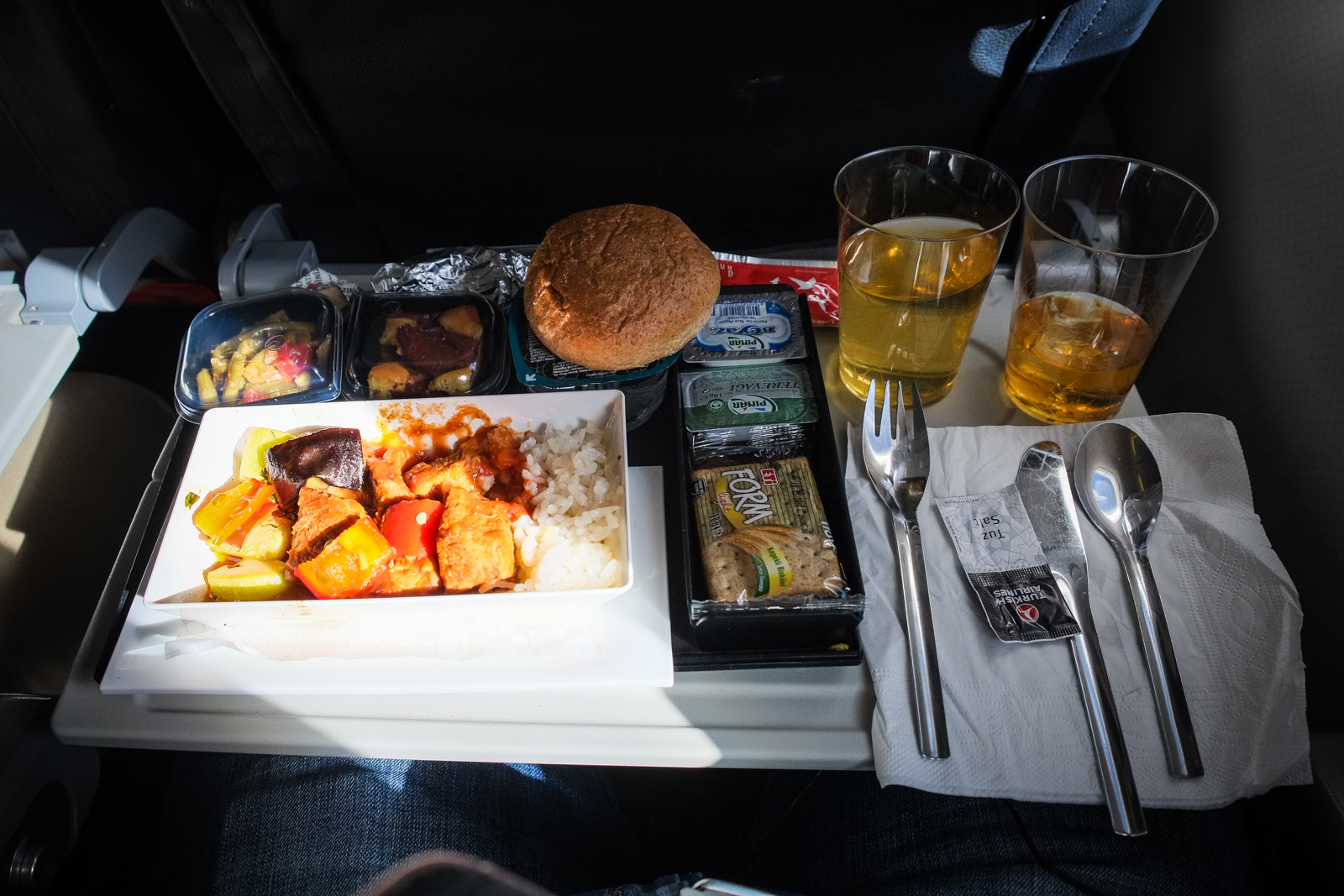 Вот так кормит Туркиш на сегменте Рим-Стамбул (справа виски Ballantines).