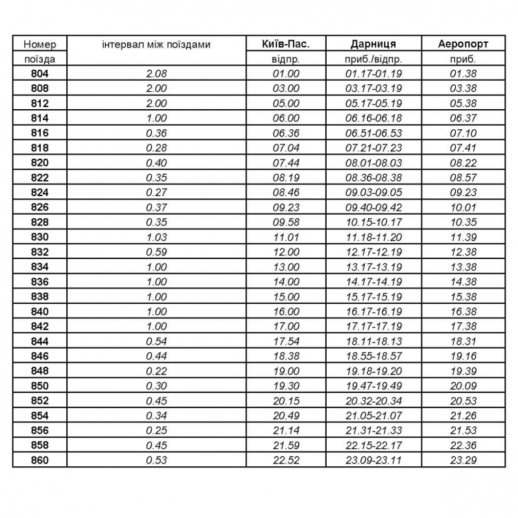 Розклад руху прискорених поїздів Київ-Пас. – Бориспіль (Аеропорт)