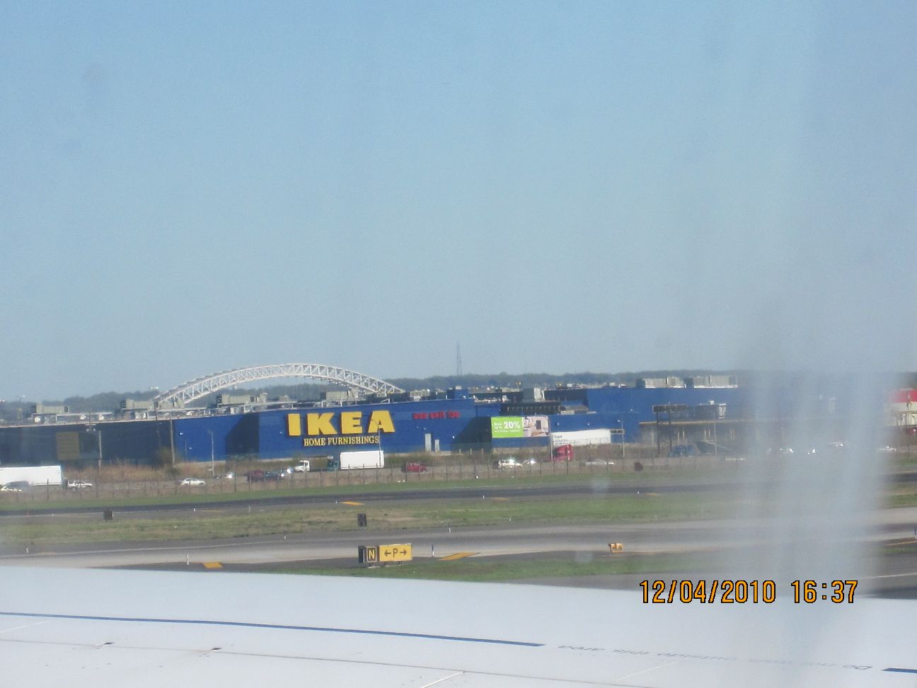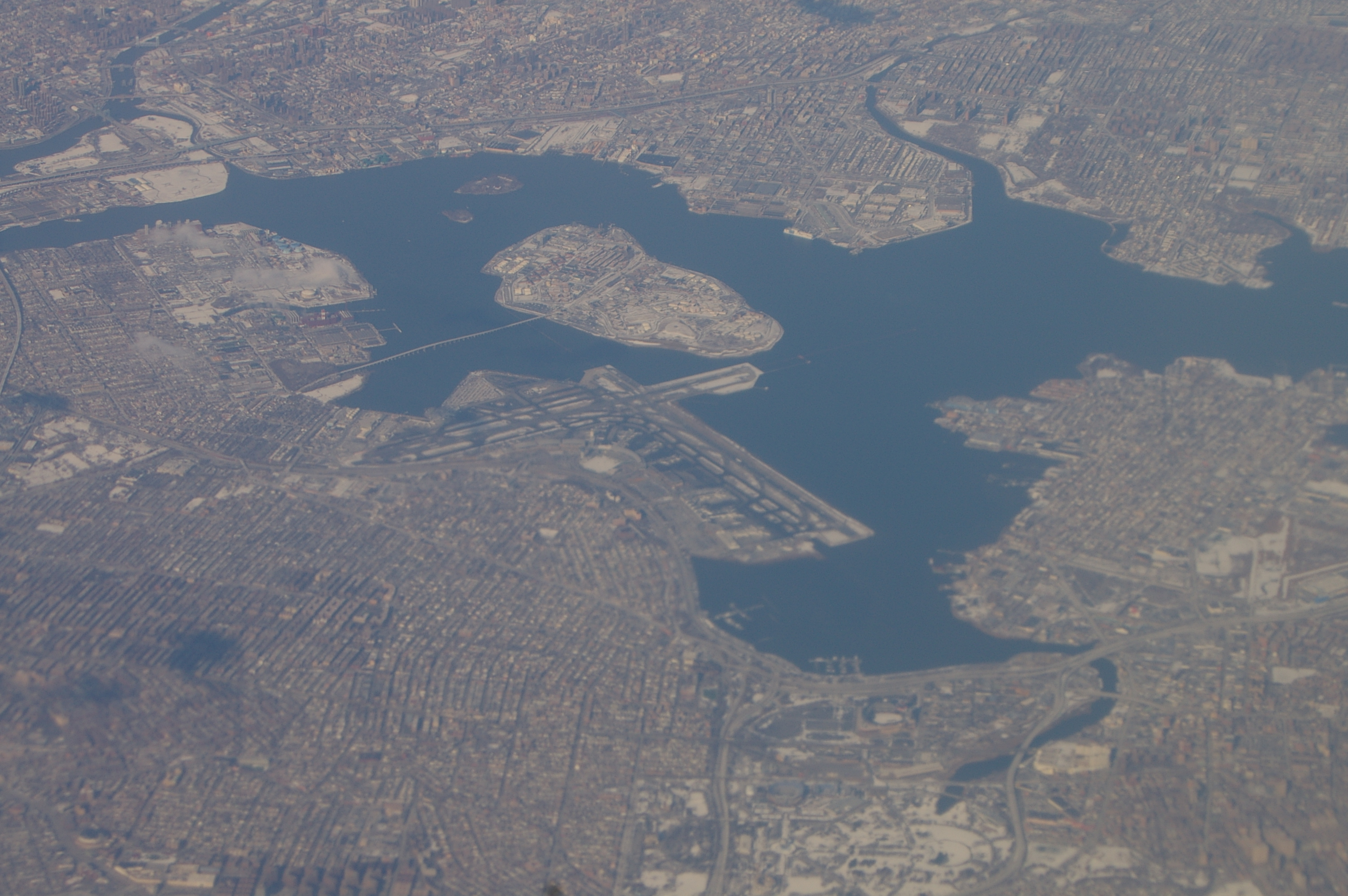 Ещё раз мост и сетка улиц и авеню Бруклина. Самолёт (рейс из Атланты в Бостон) пролетает непосредственно над аэропортом Кеннеди.