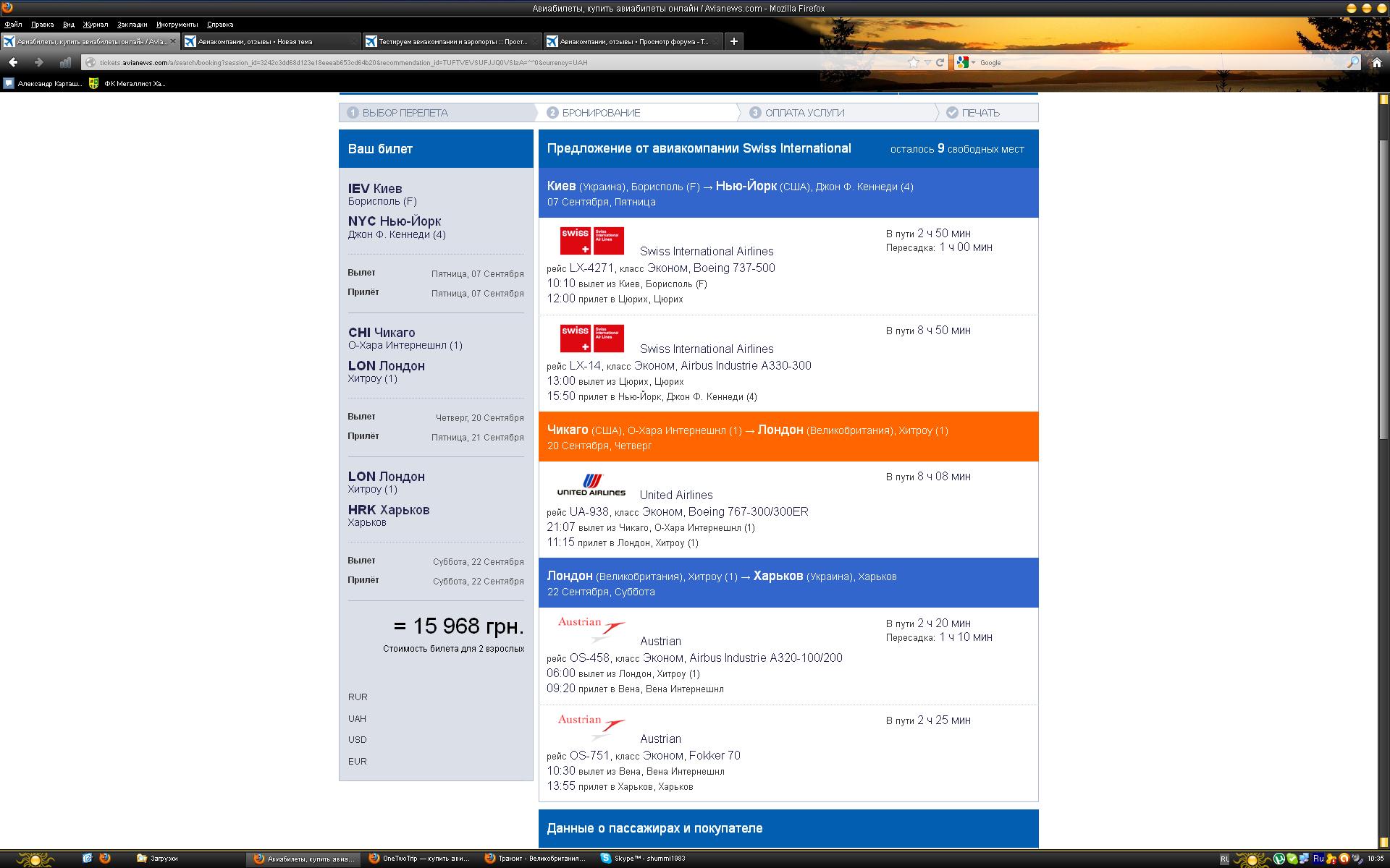 Киев-Нью-йорк, Чикаго Харьков