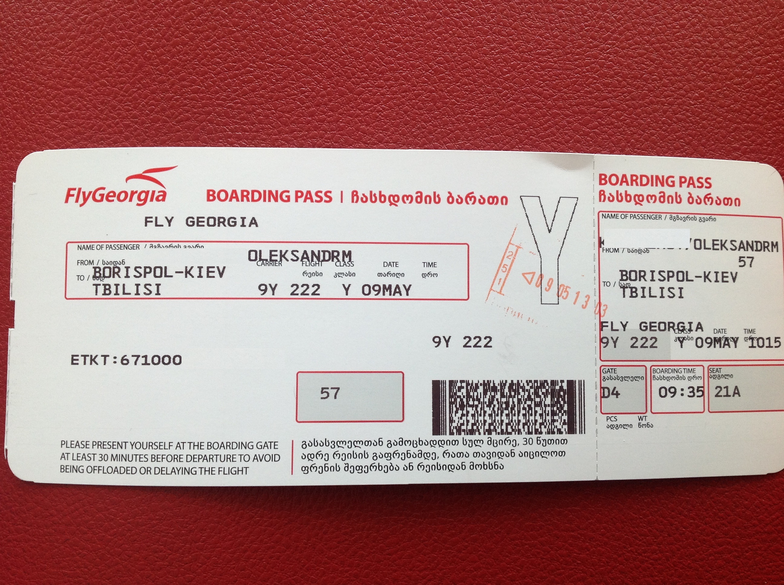 о, как раз тумбочку чистил от всякого хлама и нашел за 11 год посадочный МАУ из Киева в Тбилиси и еще наклейку на багаж