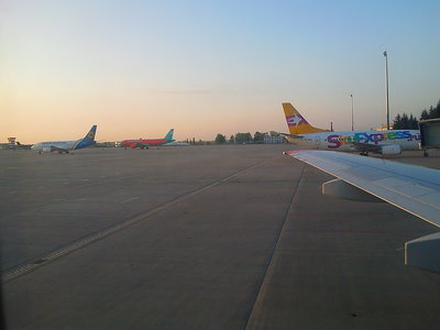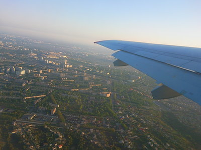 Довольно стремительно взлетели. Чуток потрепали термальне потоки от реки. Дали поесть: сок и бутерброд с рыбой – вполне ок. В Киеве жара 28 градусов. При заходе на посадку бросало, как на каменной дороге. Заход был визуальным и видно, что пилот чуток не рассчитал, касание было на правое колесо, немного повело, но быстро выровнял. В целом обычный перелет, ничего особенного.