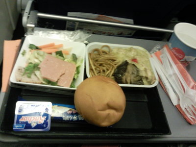 ВС был готов к отправлению на 10 минут ранее, но нас не выпустили. Сначала капитан сказал, что мы четвертые на запуск, а через 5 минут сообщил, что из-за закрытия воздушного пространства над Пекином, вылет задерживается на полтора часа. В моей ситуации мне было это даже на руку, так как стыковка в SVO более 6 часов. Поэтому комфортное кресло В767 выглядело предпочтительней сидушки в Шарике. Уснул почти сразу же, но разбудили разносом напитков. После 50 минут ожидания, почувствовал толчек – это нас уже толкали на вылет. Долго ехали к ВПП, далее быстрый взлет без остановки, мягкий набор высоты и где-то через 30 минут нам уже принесли еду. Снова выбор: курица или рыба. Взял рыбу. Так как заправляла китайская сторона, то рыбка была в сладко-медово-специфичном соусе. Но кушать можно, чем большее ее ел, тем больше нравилась. На холодную закуску был кусок рыбы и 2 ломтика мяса с какими-то китайскими солениями. На десерт лимонное желе+чай/кофе/сок. Спиртного не было. В целом понравилось. Уснул. Я могу редко спать в самолетах, обычно нужно перед этим себя замучить. Но в данной ситуации я был не особо уставшим, просто пришло время сна и я проспал ровно 6 часов до следующей еды. Спасибо комфортным креслам, а возможно также и отсутствию системы развлечения на борту, она сломалась. Завтрак состоял из курицы с лапшей и холодной закуски из шанхайских солений с 2-я кусочками мяса, маленкой вафельки и стандартными напитками. При подлете к Москве капитан поздравил всех с праздником. Сели мягко. Этот сегмент получился налегке, понравилось.