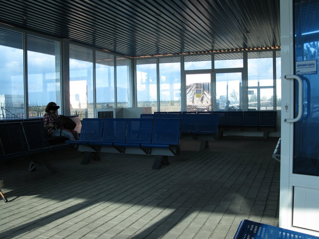 Борт из Москвы прибыл вовремя, зарулил на стоянку так, чтобы выехать самостоятельно. После выгрузки пассажиров нас попросили пройти на контроль безопасности через сектор 2 (вход со стороны стоянки бортов). Контроль стандартный, воду попросили выпить до посадки в самолет. Здесь забрали багаж. Зал вылета представляет из себя пристройку (стены и крыша, даже щели между шифером и стенами не заделаны), на полу - тротуарная плитка.