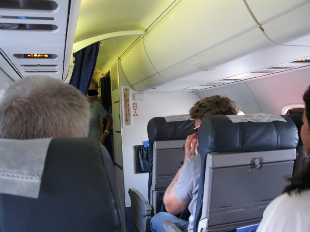 Стоит заметить, что в аэропорту Бельбек все операции погрузки-выгрузки осуществляются вручную. Телегу с багажом катят грузчики, они же и грузят, трап тоже подкатывают вручную (в Е145 он не требуется). После заправки борта и погрузки багажа нас пригласили на посадку. Идти, естественно, пешком. В первый раз меня от Ан-24 везли на Форд-Транзит (делал 2 подхода). Загрузка рейса - 36 паксов, то есть 75% от полной (в DNR 48 мест). В 17-35 начали руление, в это время нам провели инструктаж по безопасности, и в полном соответствии с расписанием в 17-40 начали разбег. Состояние салона достаточно хорошее, видно, что он не новый, но поддерживается в хорошем состоянии (затертость кресел так не бросается в глаза, как на годовалых ATR Ютов, через 4 дня летел ими). Сам самолет для коротких рейсов вполне комфортен, не знаю, как сзади, но впереди шума двигателей почти не слышно было, тряски не было, набор высоты и снижение ничем особо не напрягали.