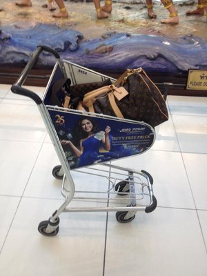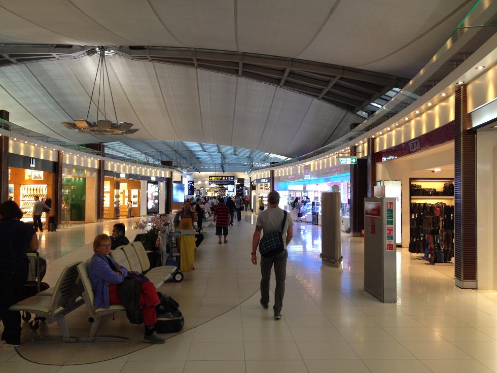 За 40 бат и 25 минут сие чудо инженерной мысли доставило меня в самый большой единый терминал мира, как уверяют сами тайцы: Пройдя к стойкам регистрации авиакомпании Cathay Pacific, я получил посадочный талон, приглашение в лаунж и бумажку на приоритетное прохождение контроля на безопасность и паспортного контроля Пройдя все формальности, попал в чистую зону аэропорта, где, как и в Дубае, есть очень приятные мне маленькие тележки для багажа: И еще много всего интересного: