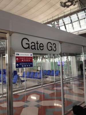 В прошлом, когда я вылетал Каттаями из Бангкока, они имели привычку поставить свой самолет на гейты C, тогда когда их лайнж находится в зоне гейтов G. Путь от лаунжа до гейта занимал минут 20 минимум. В этот раз гейт оказался G3, который был в двух минутах готьбы от бизнес-зала Cathay Pacific
