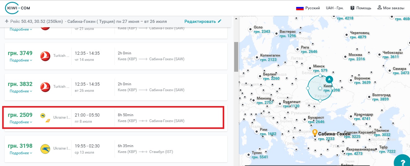 Я вказав ціну у два боки. В липні є варіант на kiwi.com. Там варіант Київ-Стамбул через Запоріжжя Мау, назад Пегас+Мау через Запоріжжя. Стамбул напряму іноді буває дешевшим 100usd., але в літку рідко.avia-rivne писав:та ні, нереально, там 140-150 тра мати мінімум.Стамбул