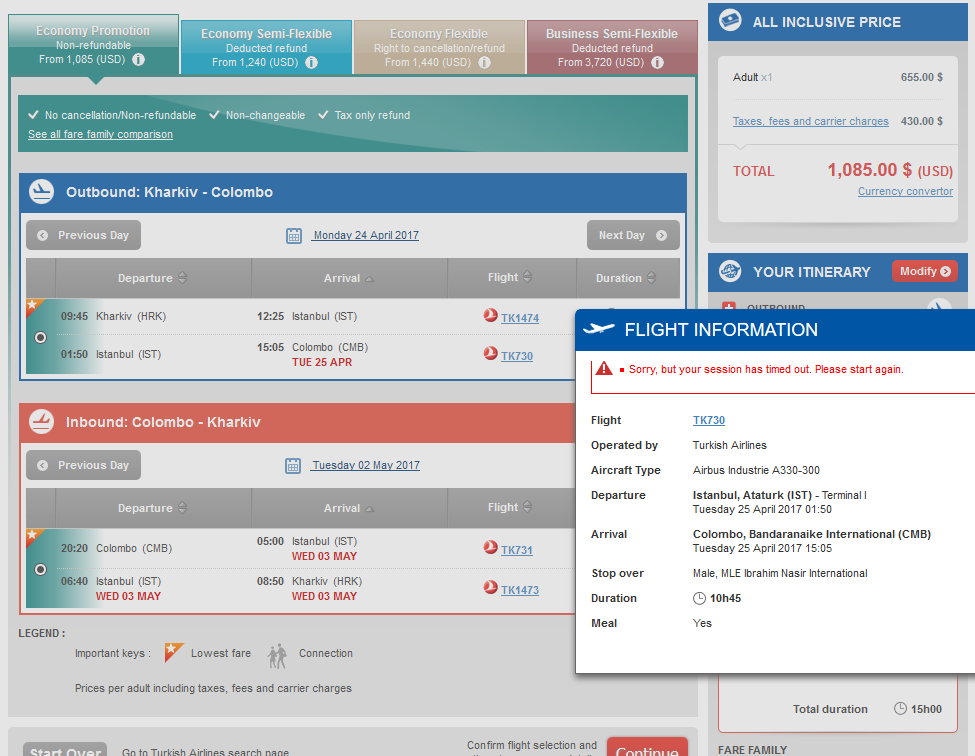 Пристрелочный поиск для начала на сайте туркишей по Харьков-Коломбо показал мин цену 729-795-835 при цене в Пекин 499. Кстати, здесь можно как-то существенно сэкономить?